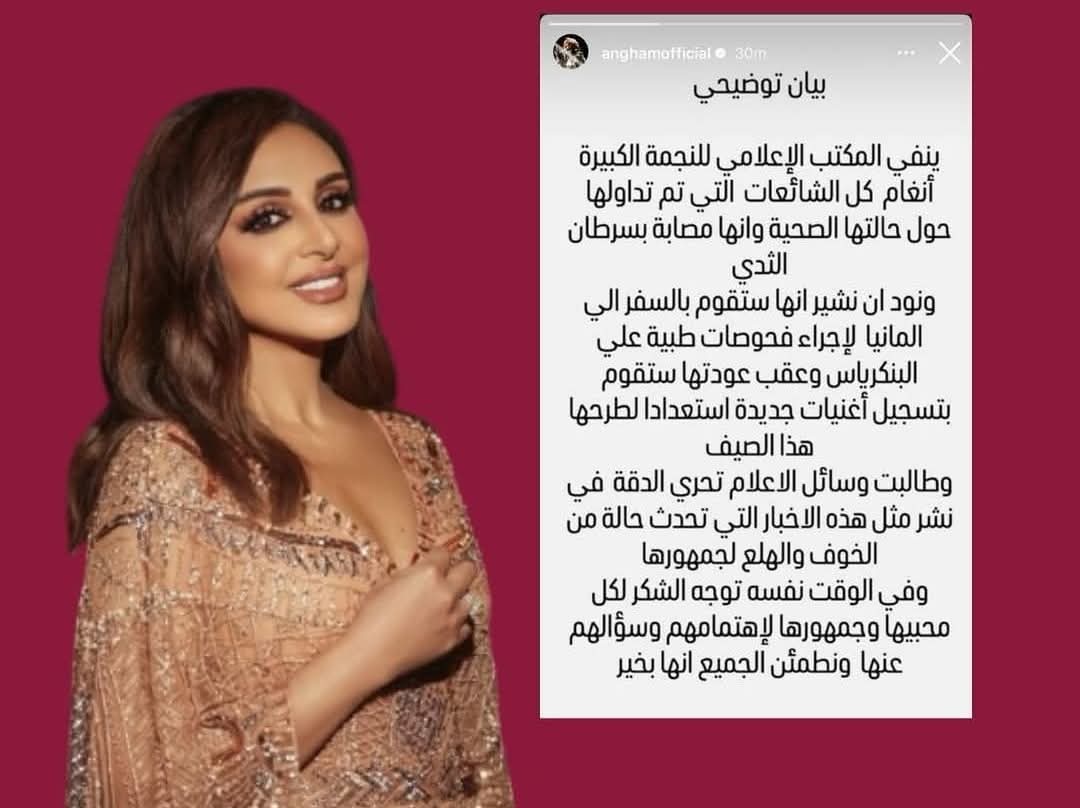 بعد التحقق، المكتب الإعلامي لأنغام أصدر بيانًا رسميًا نفى فيه تمامًا هذه الشائعات.