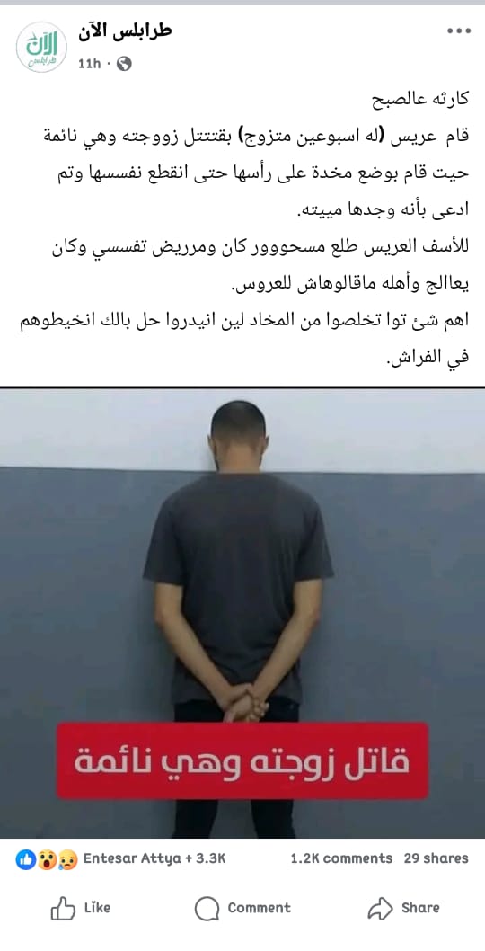 انتشر على مواقع التواصل الاجتماعي منشور يزعم أن رجلاً «قتل زوجته وهي نائمة»، مرفقًا بصورة يظهر فيها رجل يقف ووجهه للحائط.