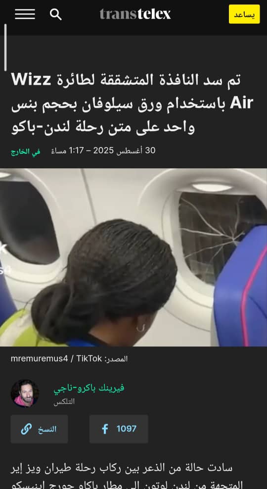 بالبحث العكسي عن الصورة المتداولة، تبيّن أنها تعود إلى حادثة سابقة على متن طائرة تابعة لشركة Wizz Air.