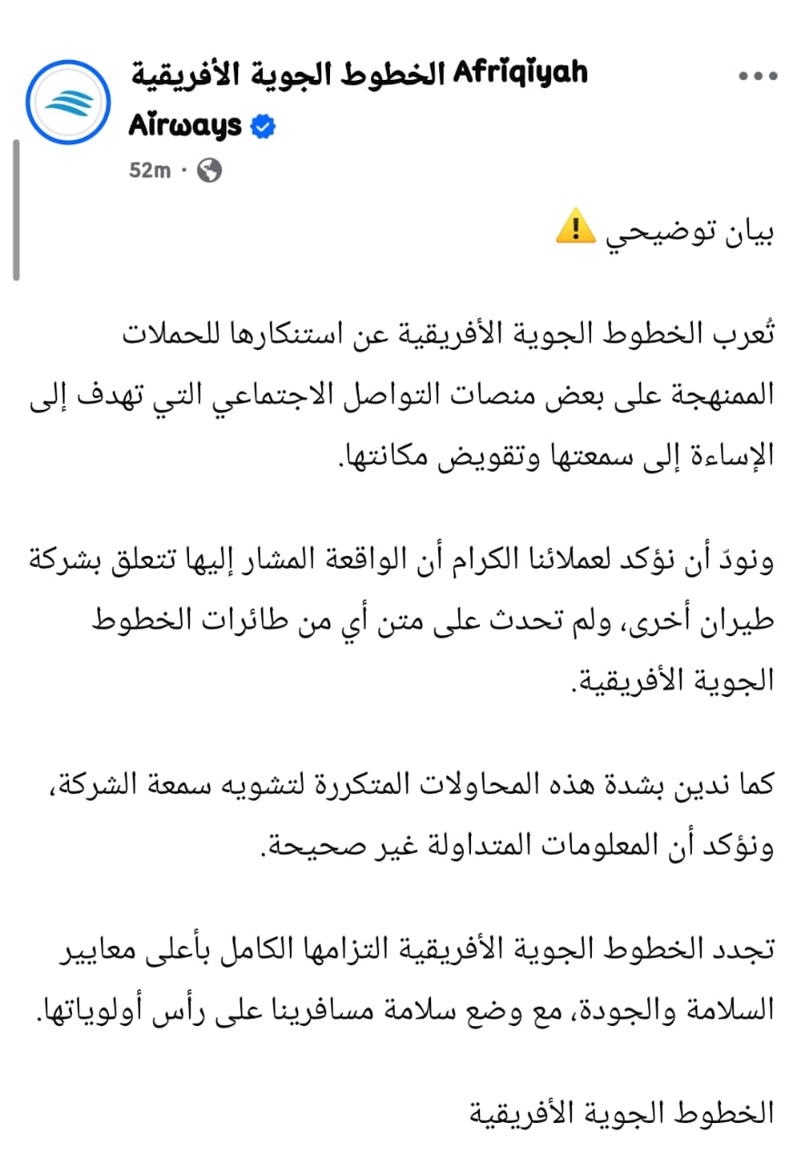 انتشرت على صفحة فيسبوك محلية رواية تقول إن ركاب الخطوط الأفريقية اكتشفوا أثناء رحلتهم كسرًا في “قزاز الروشون” (النافذة)، مما أدى إلى عودة الطائرة واستبدال الزجاج، ثم رفض الركاب مواصلة السفر على نفس الطائرة.