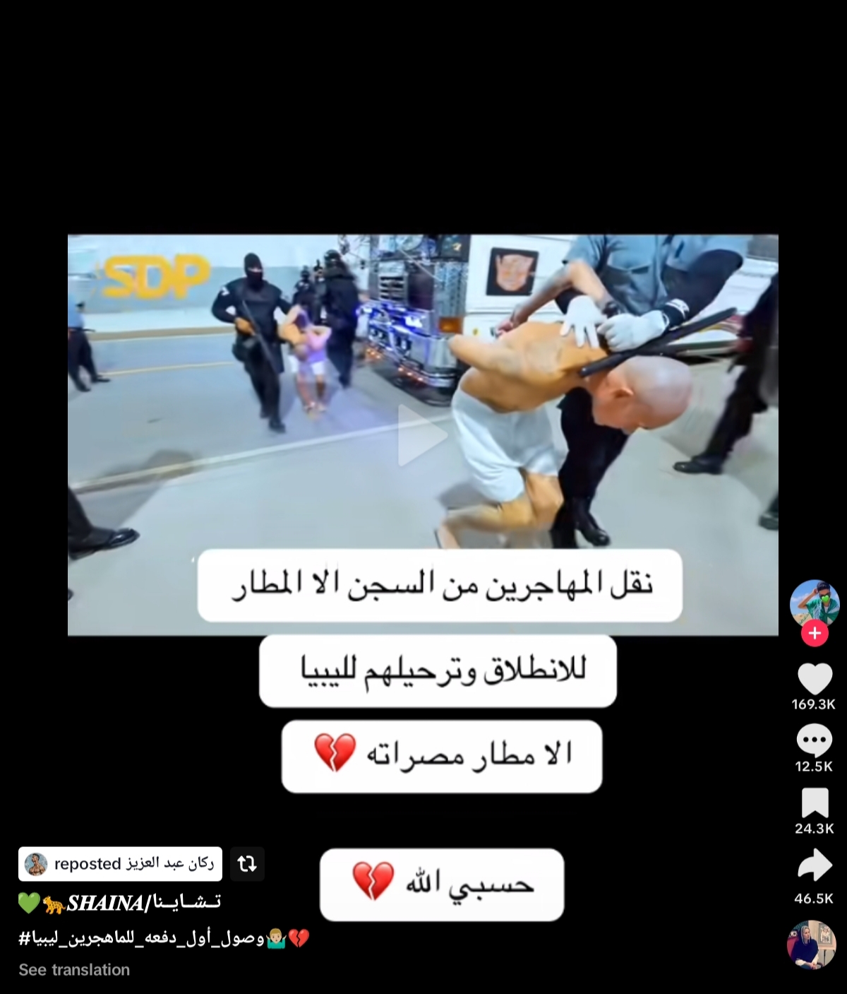 تداول مستخدمو منصة “تيك توك” خلال الأيام الماضية مقطع فيديو هنا يُظهر مجموعة كبيرة من الرجال يسيرون بانتظام، وأرفقه ناشروه بتعليقات تفيد بأنه يوثّق لحظة وصول أول دفعة من المهاجرين إلى ليبيا، ما أثار جدلًا واسعًا وتخوفات من تصاعد موجات الهجرة.